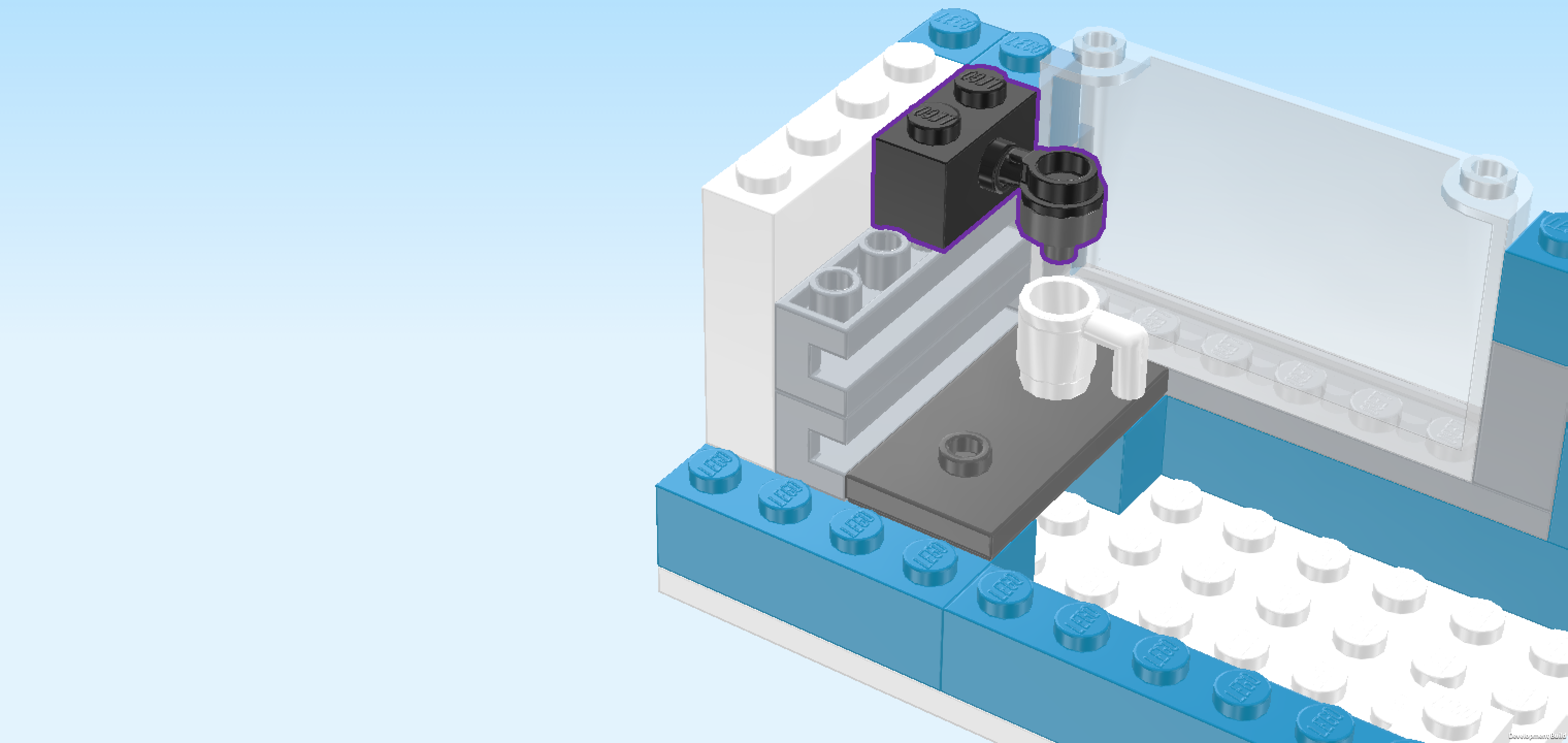 | Put 1 horizontally on the previous piece's backmost knob and the knob to its left, slope to the right. |